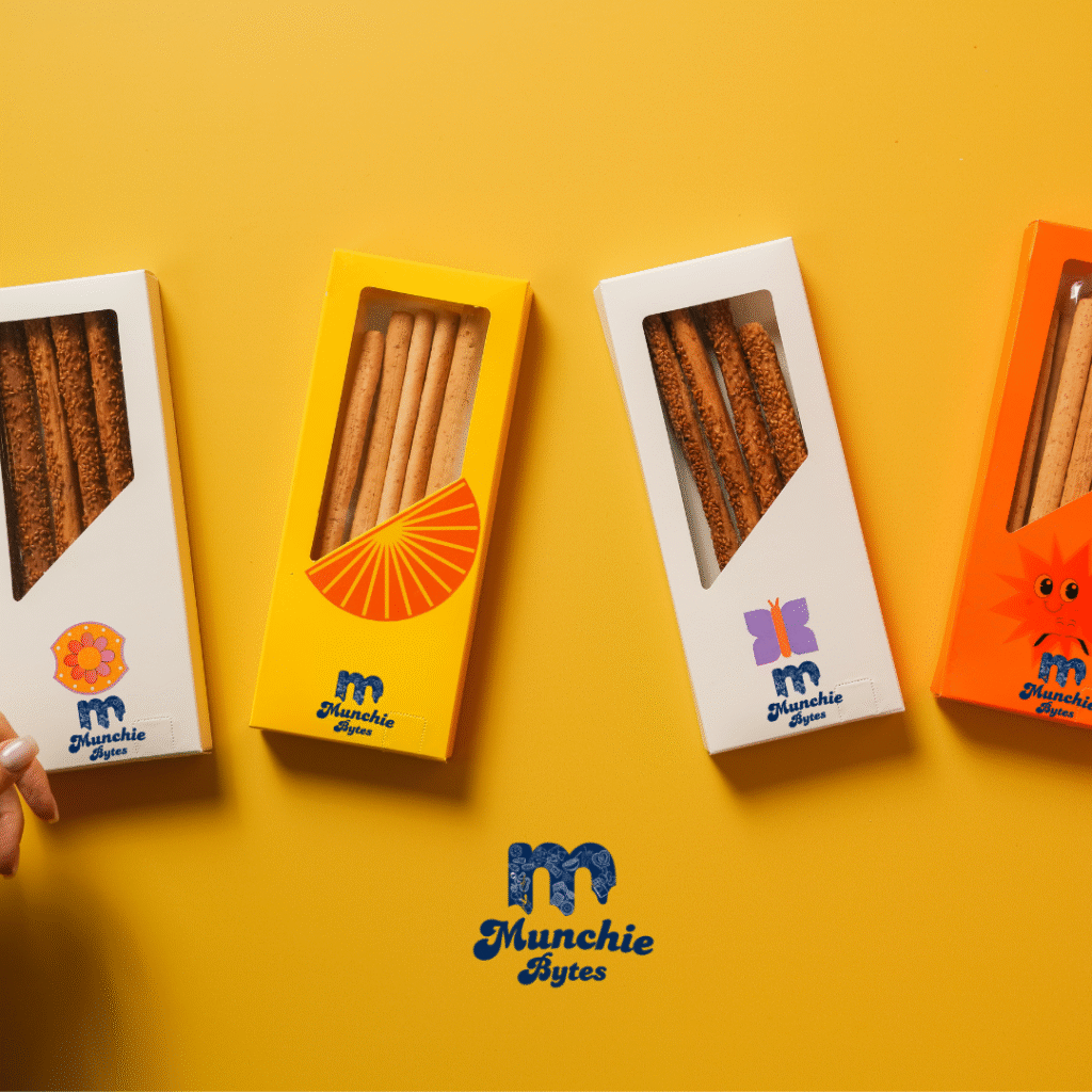 With elegant colors, playful typography, and a bite-inspired icon, the logo captures the brand’s essence—snacking made joyful, energetic, and irresistibly catchy for the modern